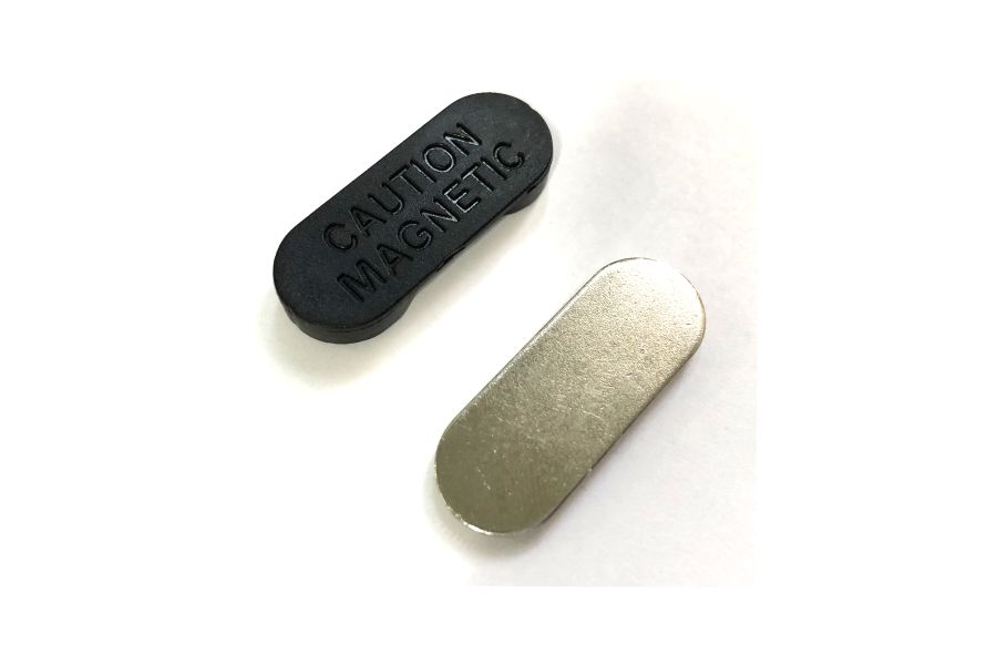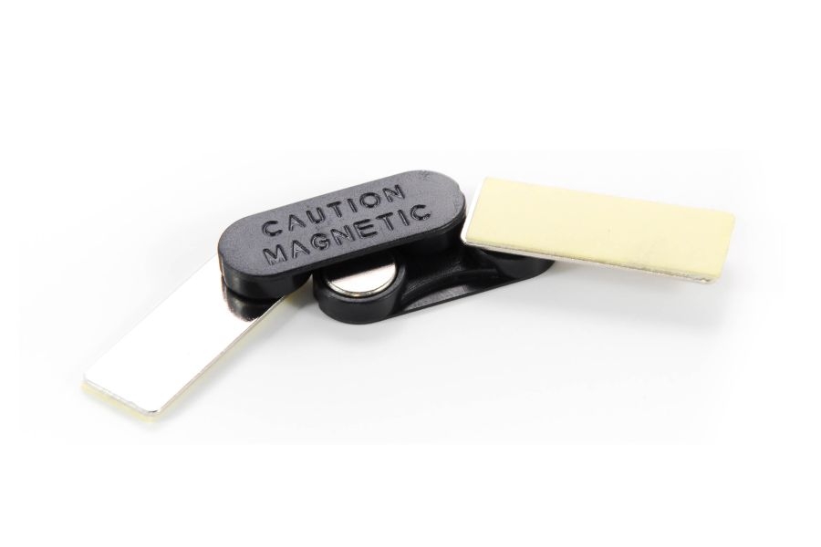 Sistem de prindere cu magnet mediu Sistemul este format din doua piese (metal si magnet) si prevazut cu banda adeziva pentru o lipire usoara si rezistenta. Dimensiune: 33x12 mm