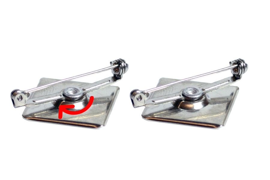 Sistem de prindere cu ac si baza metalica patrata. Acul se poate roti fata de baza din metal.