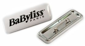 Insignele sunt formate din componente metalice capsate. Personalizarea se face prin imprimare color. Imprimarea este protejata cu o folie transparenta. Sistemul de prindere este cu ac.