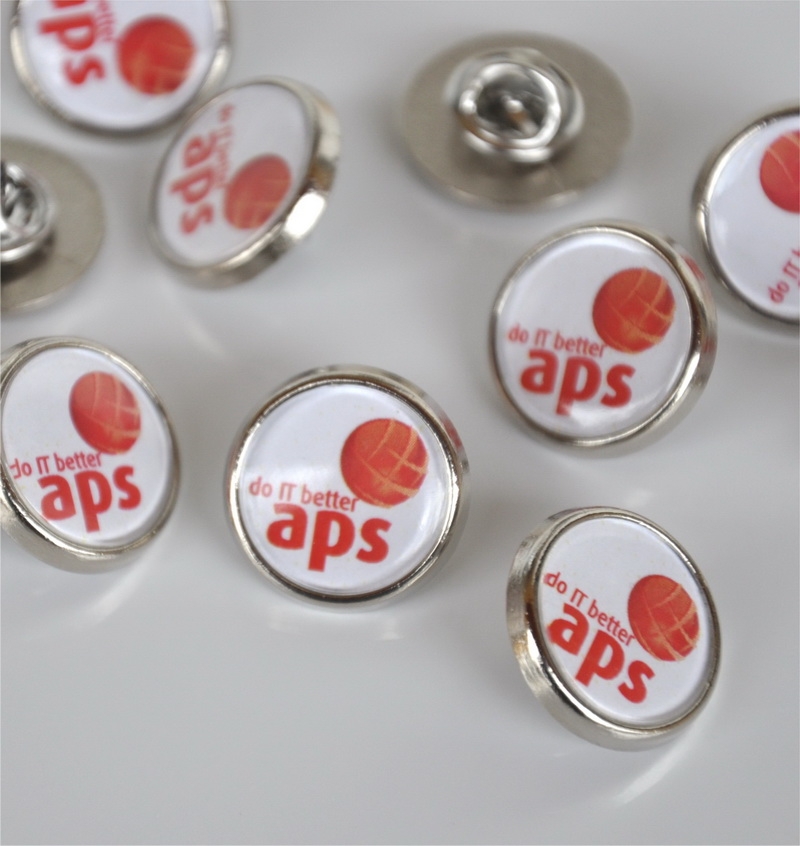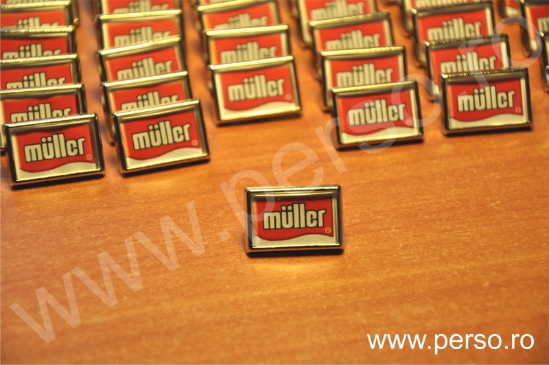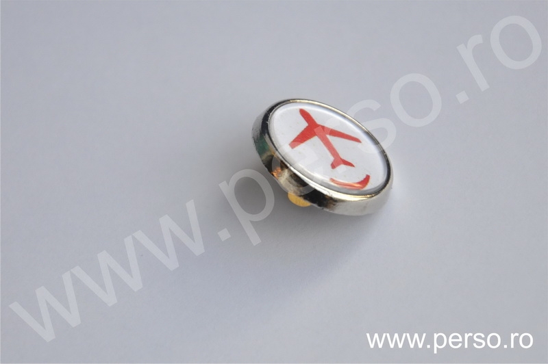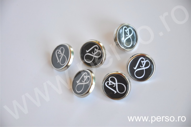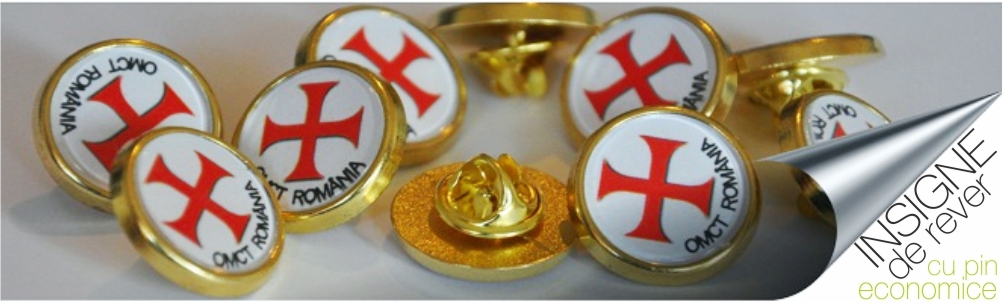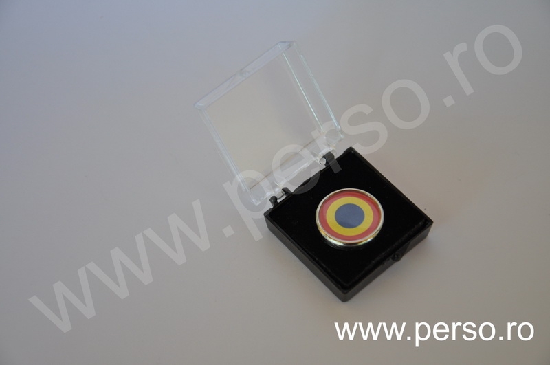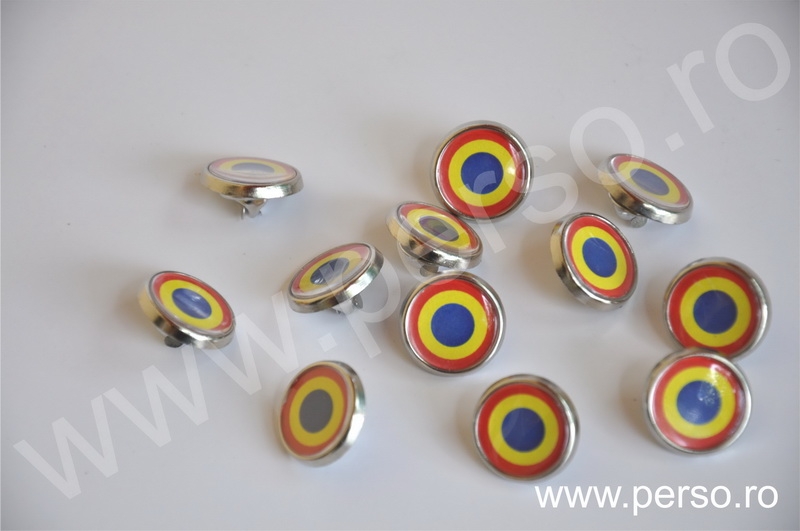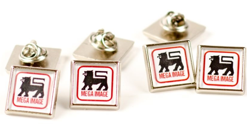 Insignele sunt formate din baze metalice aurii sau argintii, print personalizat color si capac transparent capsat