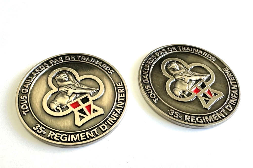Medalie cu logo in relief, patinare si emailare cu negru si rosu.