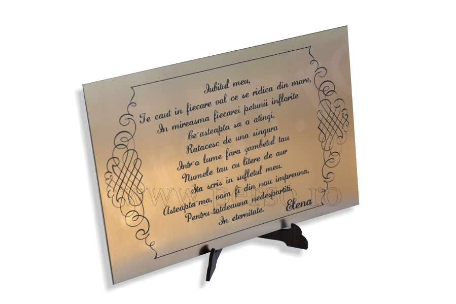 Placa funerara din material dublu strat cu fata bronz metalizat.