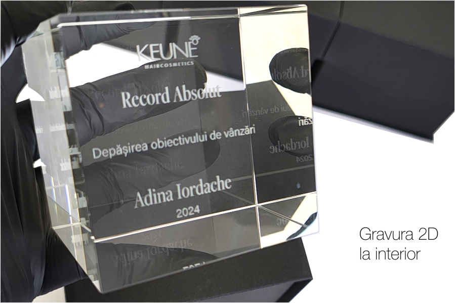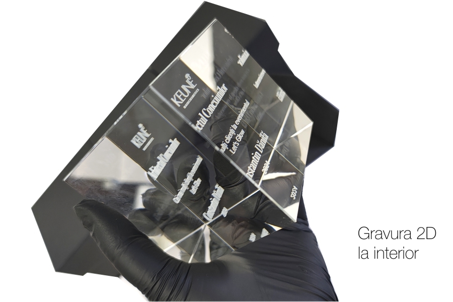 Trofeu gravat la interior. Gravura 2d in cristal.