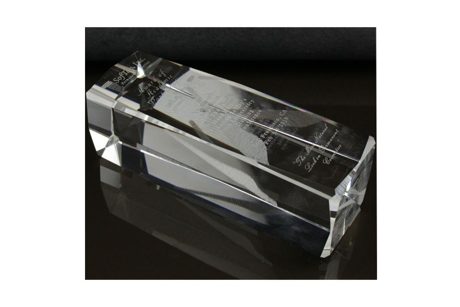Trofeu din cristal, in cutie de prezentare neagra.
