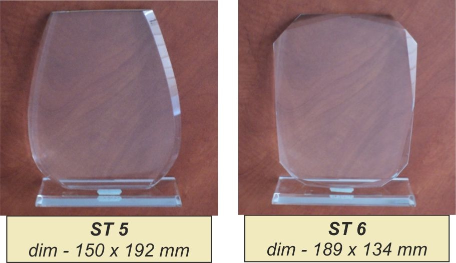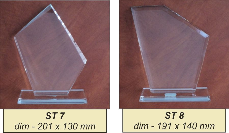 Trofeu din sticla de 1,2 cm grosime ambalat in cutie de prezentare albastra. Cutiile pentru trofeele din categoria ST sunt gratuite dar pot prezenta anumite deformari sau defecte. Trofeele au o inaltime de aprox 20 de cm